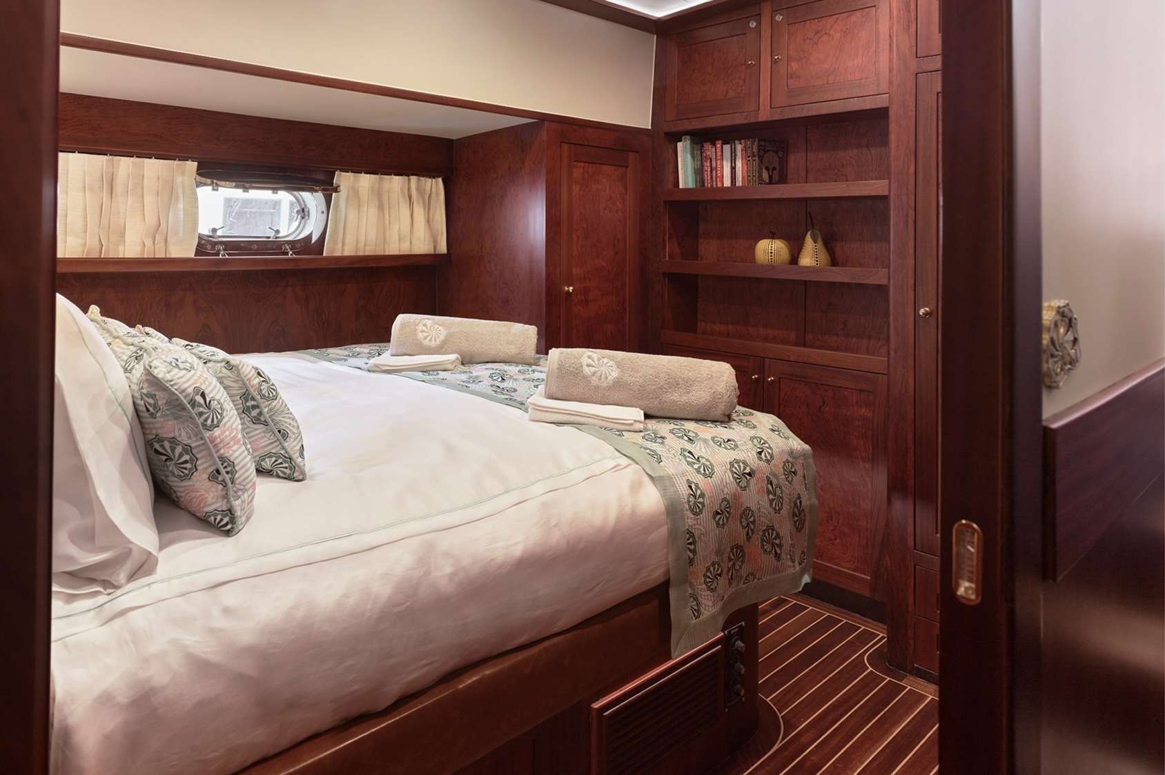 ACCOMMODATION ON BOARD The yacht accommodates up to 9 guests in 4 comfortable cabins: Master Cabin: Spacious forward cabin with king size bed, en-suite bathroom and air conditioning. Guest Cabins: One double cabin with queen bed, one twin cabin and one triple cabin with queen and single bed, all with en-suite bathrooms and air conditioning, ensuring comfort and privacy for all guests.