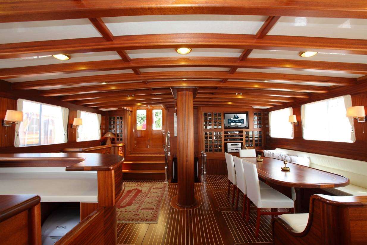 CRUISING AREA KAYA GUNERI IV is based in Bodrum and is available for charter in the Turkish Riviera, with possible itineraries in nearby Greek islands upon request. With a stable hull and solid construction, she provides safe navigation and the ability to anchor in quiet coves and exclusive bays.