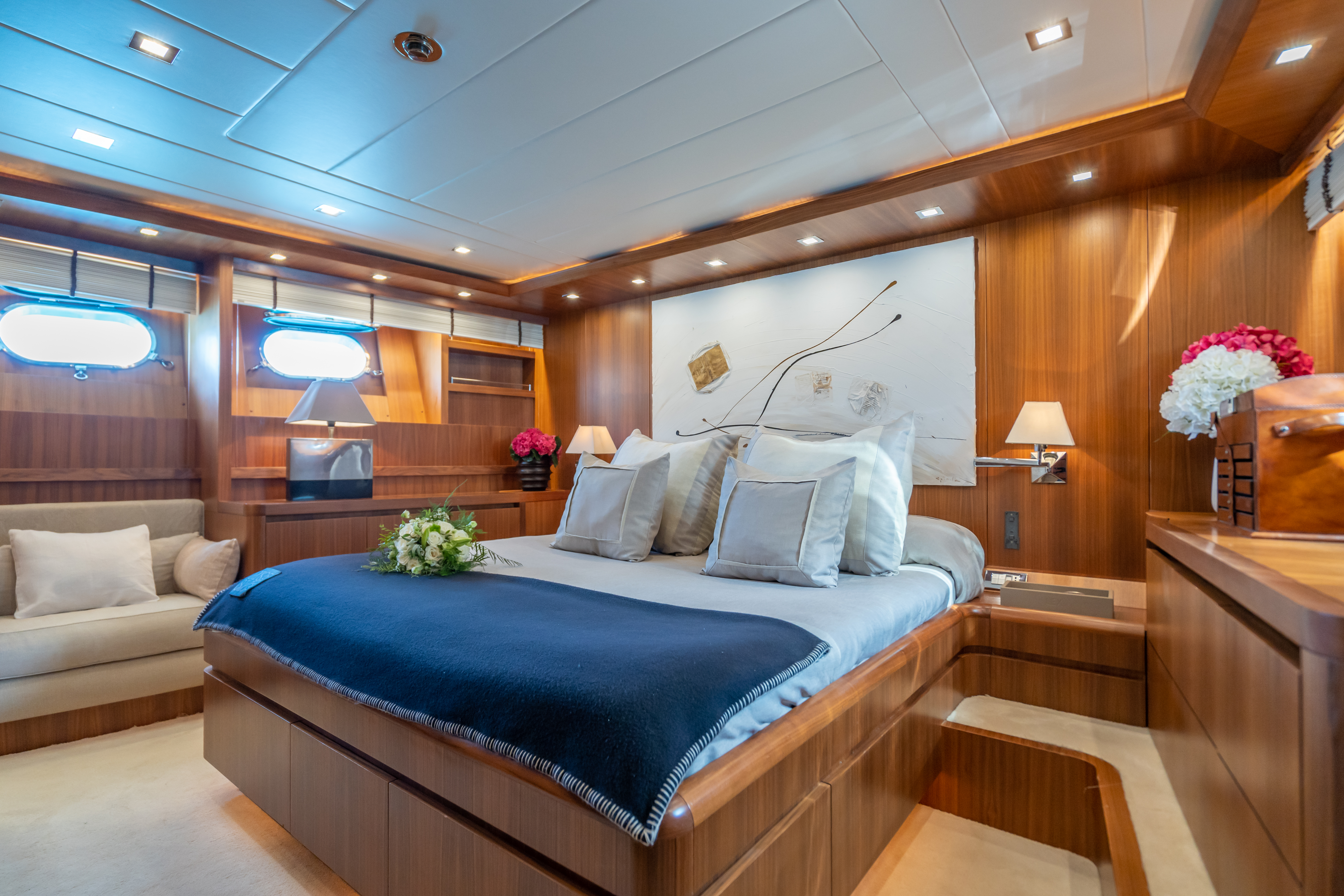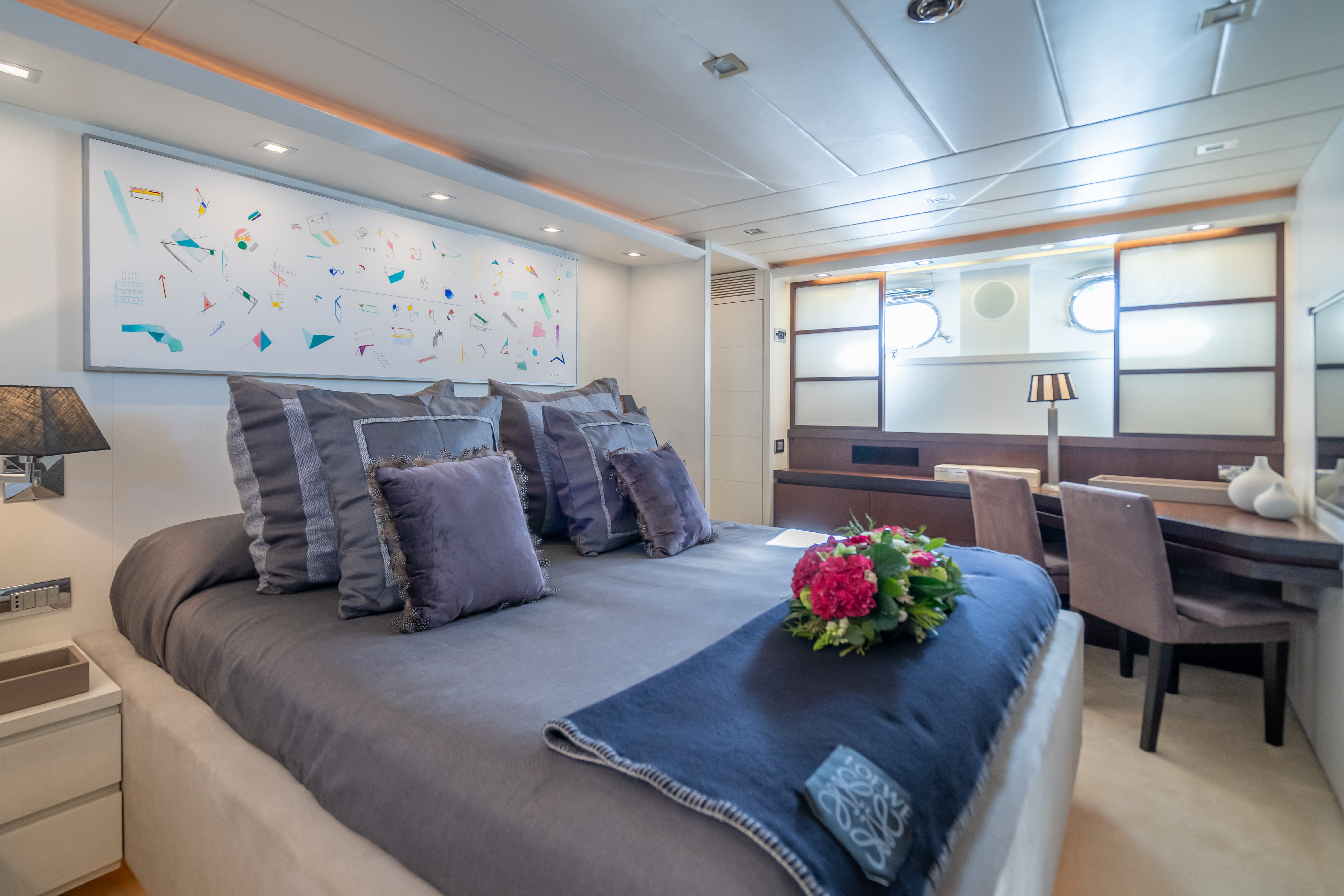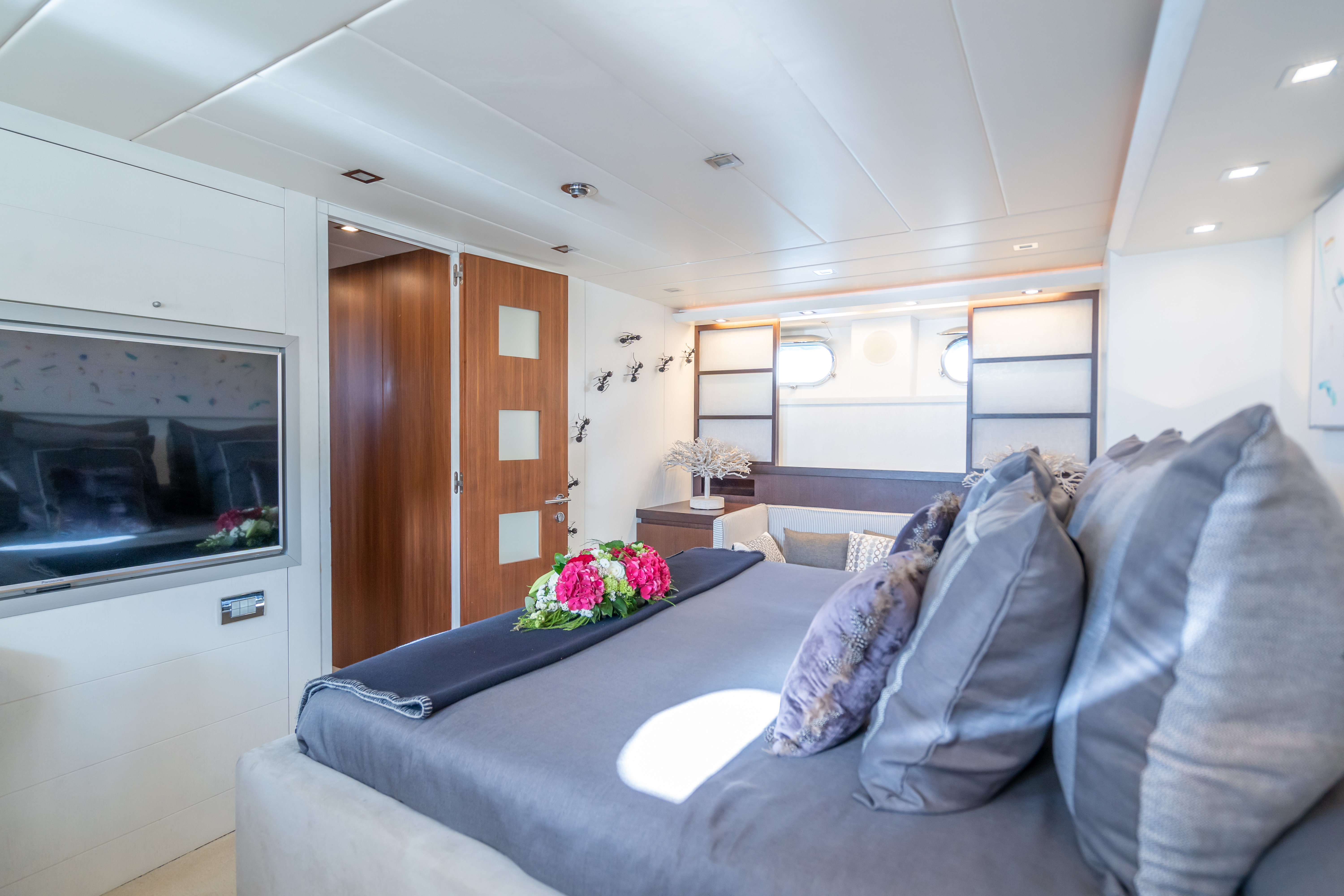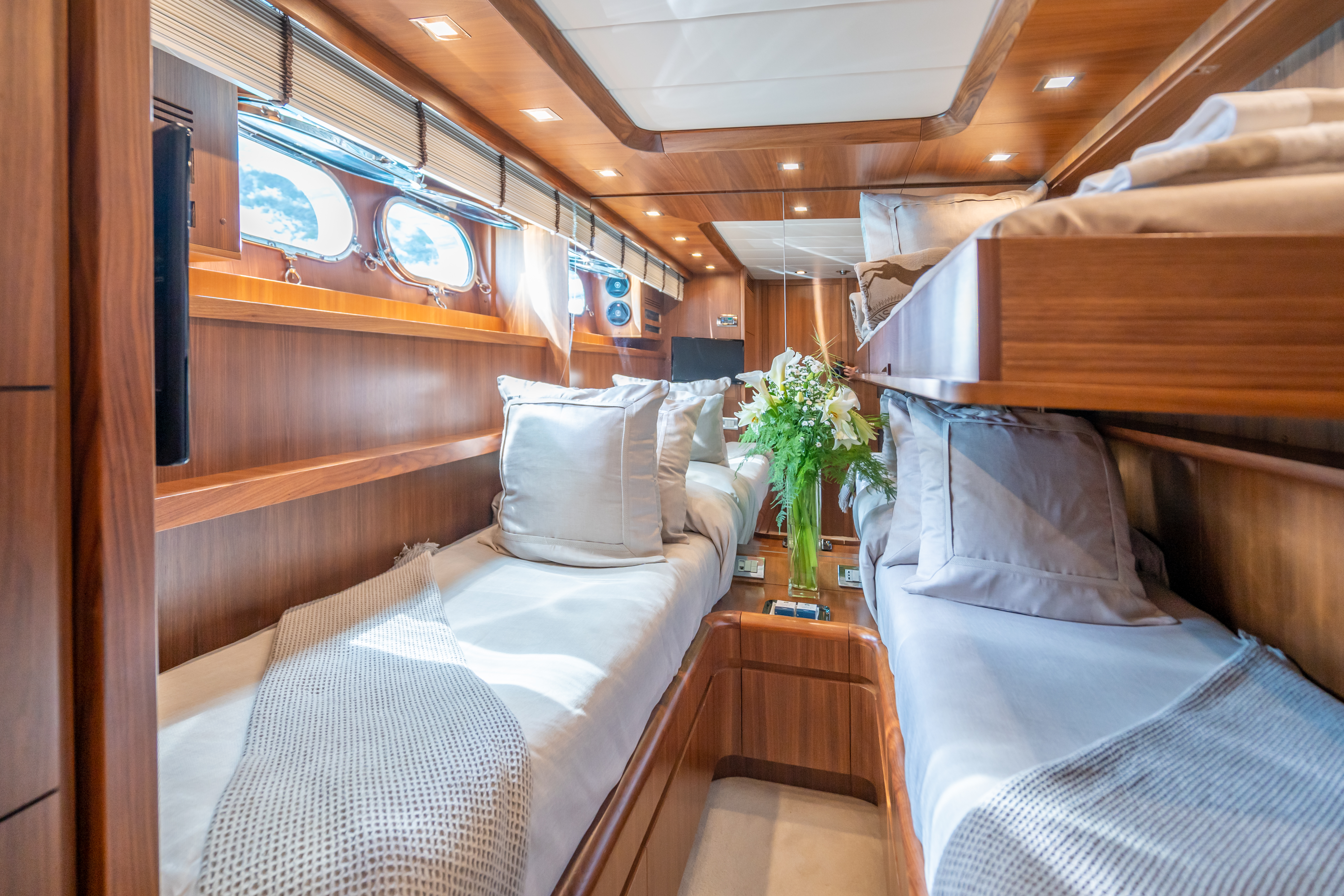 ACCOMMODATION ON BOARD The yacht accommodates up to 8+2 guests overnight in 4 cabins: 1 Master cabin, 1 VIP cabin, and 2 twin cabins convertible into doubles or with Pullman beds, all with ensuite bathrooms. Perfect for families or groups seeking flexible layouts and maximum comfort.