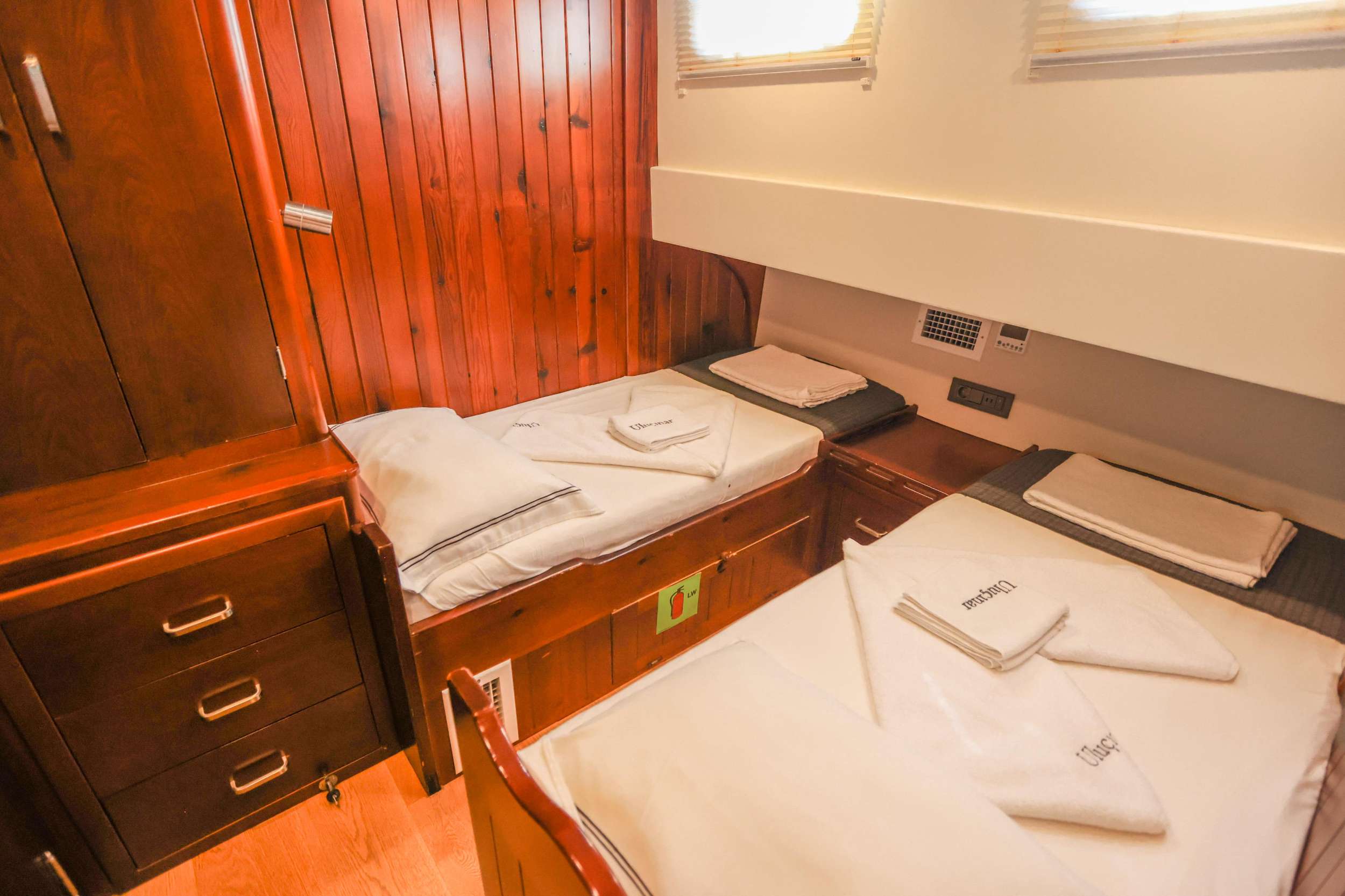 ACCOMMODATION ULUCINAR accommodates up to 12 guests in 6 cabins, all with en-suite bathrooms and air conditioning: Double Cabins: Four well-appointed cabins with double beds. Twin Cabins: Two cabins with twin beds, ideal for families or groups.