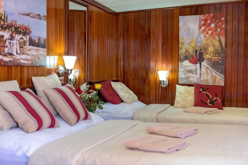 ALOJAMIENTO A BORDO Este barco de alquiler ofrece alojamiento para 22 personas en 11 camarotes, garantizando confort y privacidad:
