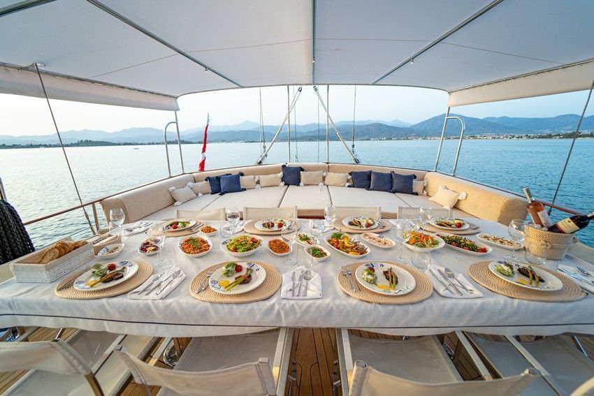 ÁREA DE NAVEGACIÓN HAPPY DAYS navega por la costa sur de Turquía, con puerto base en Gocek, ideal para descubrir calas vírgenes, aguas turquesas y para fondear en bahías tranquilas. Con una velocidad de crucero de 9 nudos y una velocidad máxima de 11 nudos, garantiza una travesía segura y eficiente. Importante: este barco no dispone de velas.