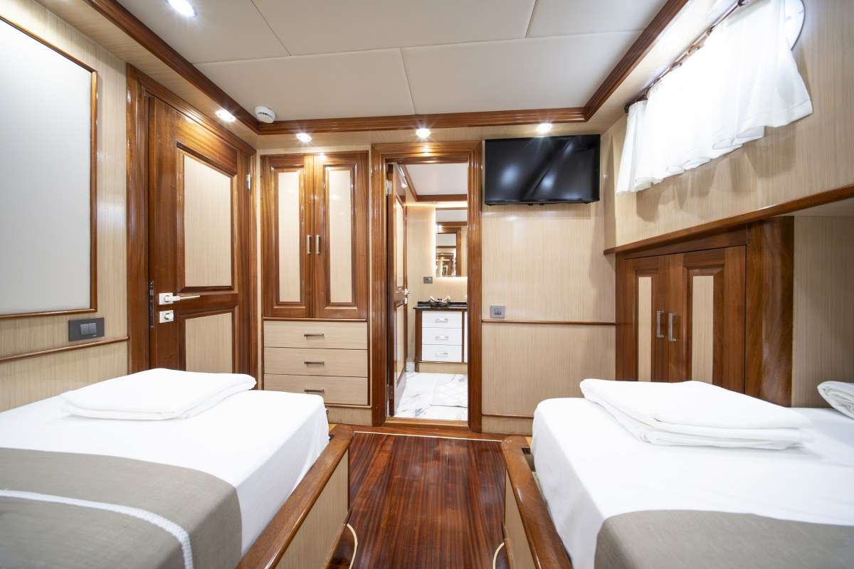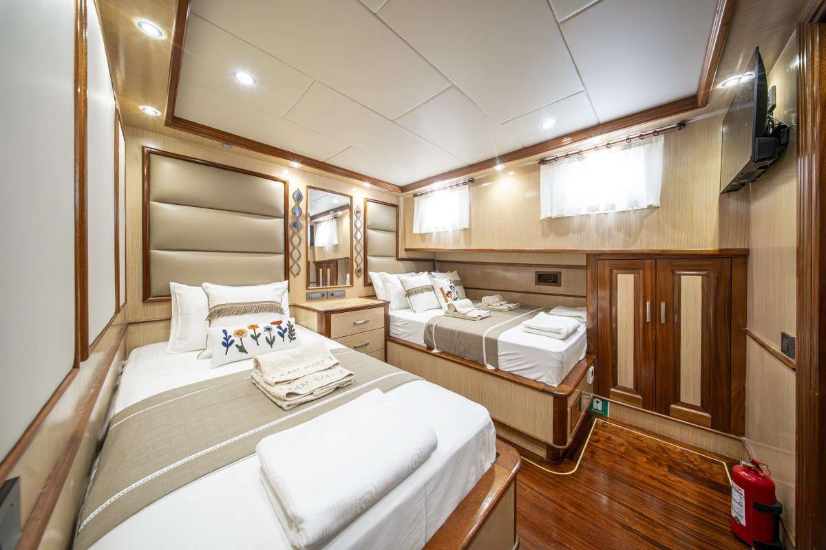 ALOJAMIENTO A BORDO KAAN AYAZ ofrece alojamiento para 12 invitados distribuidos en 6 camarotes de lujo: 2 camarotes Master, 2 camarotes dobles y 2 camarotes twin. Todos están equipados con baño en suite, aire acondicionado, ropa de cama premium, secador de pelo y amplios espacios de almacenamiento. La zona de tripulación es independiente para garantizar la total privacidad de los huéspedes.