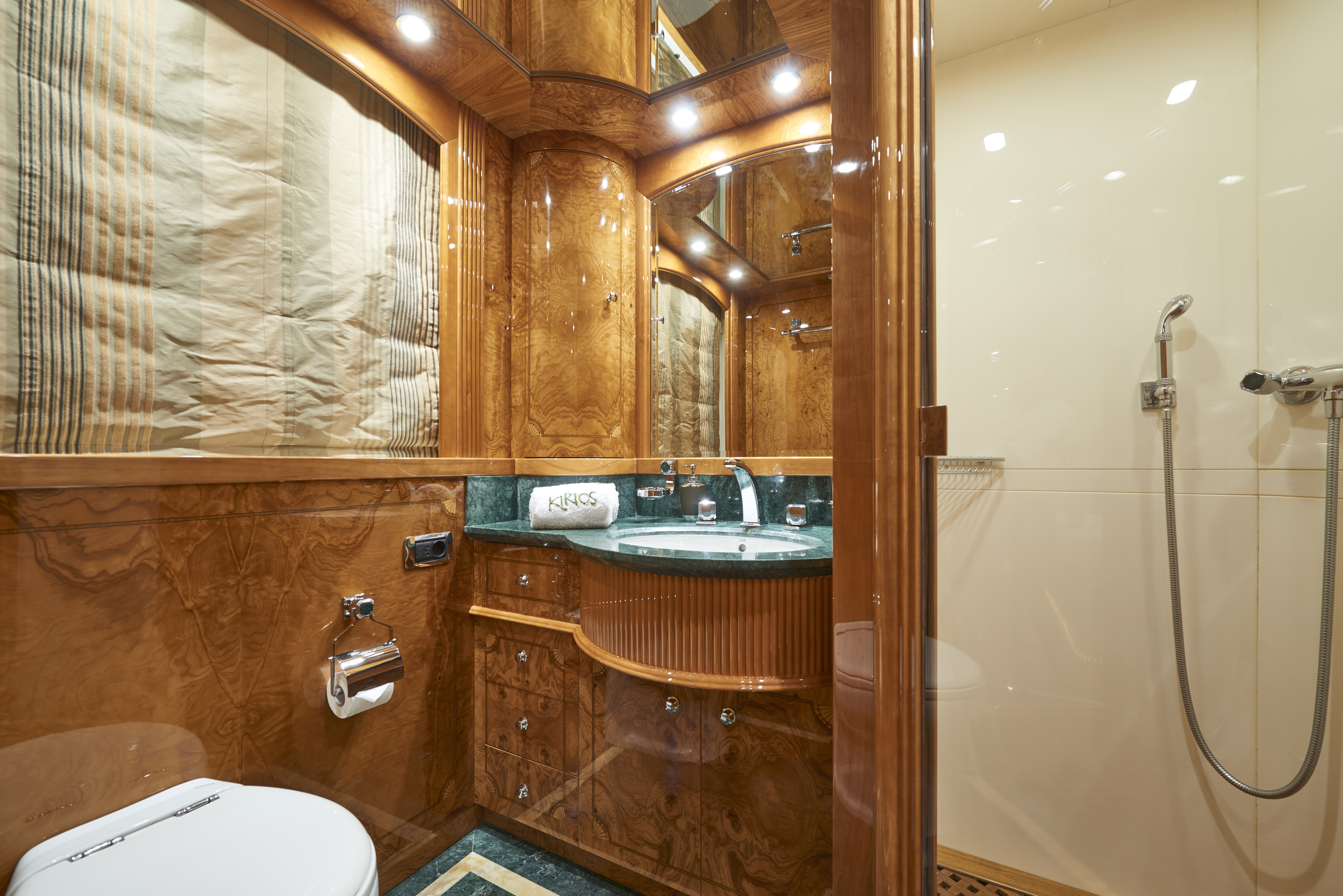 ACCOMMODATION The yacht accommodates up to 10+1 guests in 5 cabins: One Master cabin, one VIP cabin, two twin cabins with single beds, and one studio which can be used as an extra cabin. All cabins come with en-suite bathrooms, providing comfort and privacy for all guests.