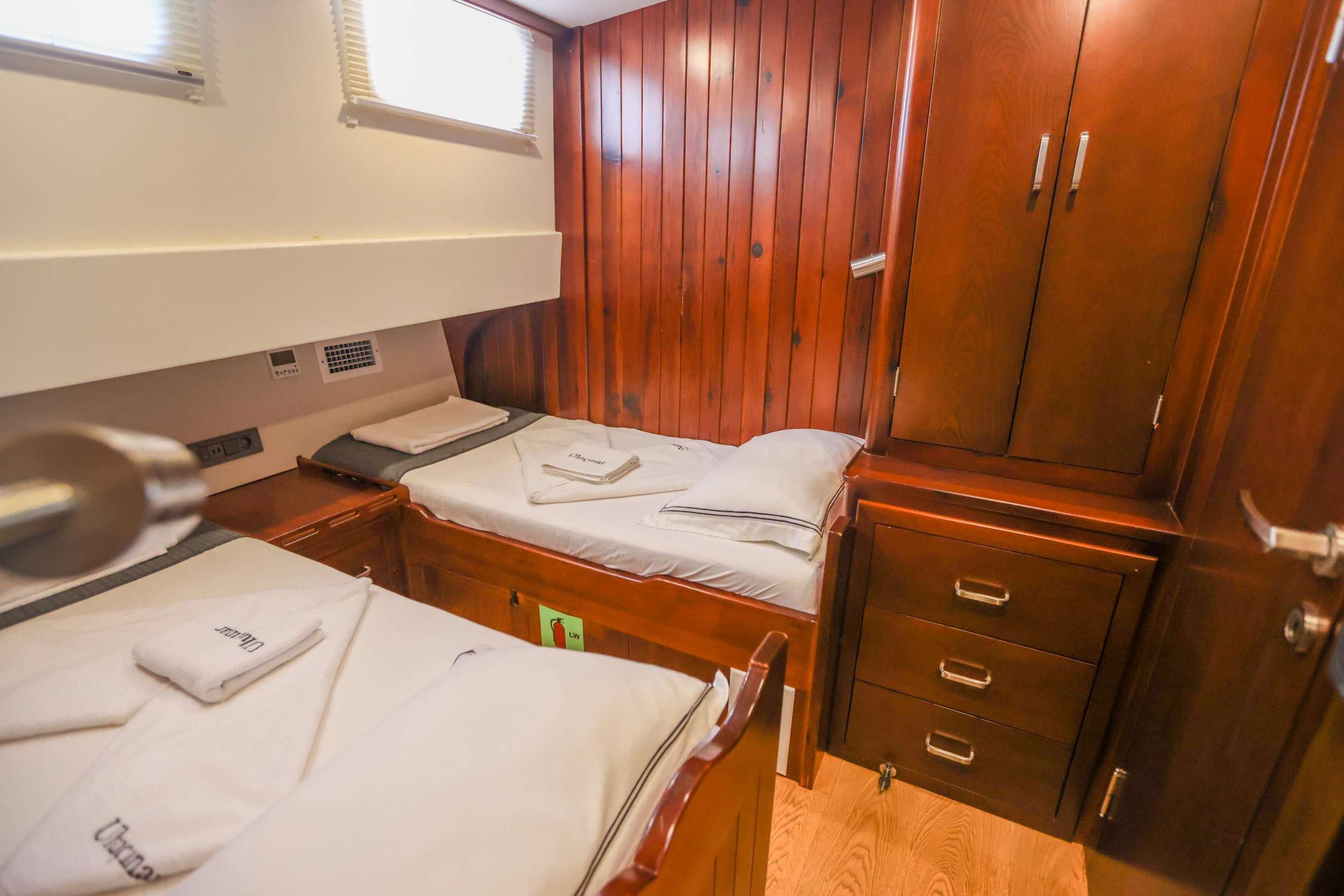 ACCOMMODATION ULUCINAR accommodates up to 12 guests in 6 cabins, all with en-suite bathrooms and air conditioning: Double Cabins: Four well-appointed cabins with double beds. Twin Cabins: Two cabins with twin beds, ideal for families or groups.