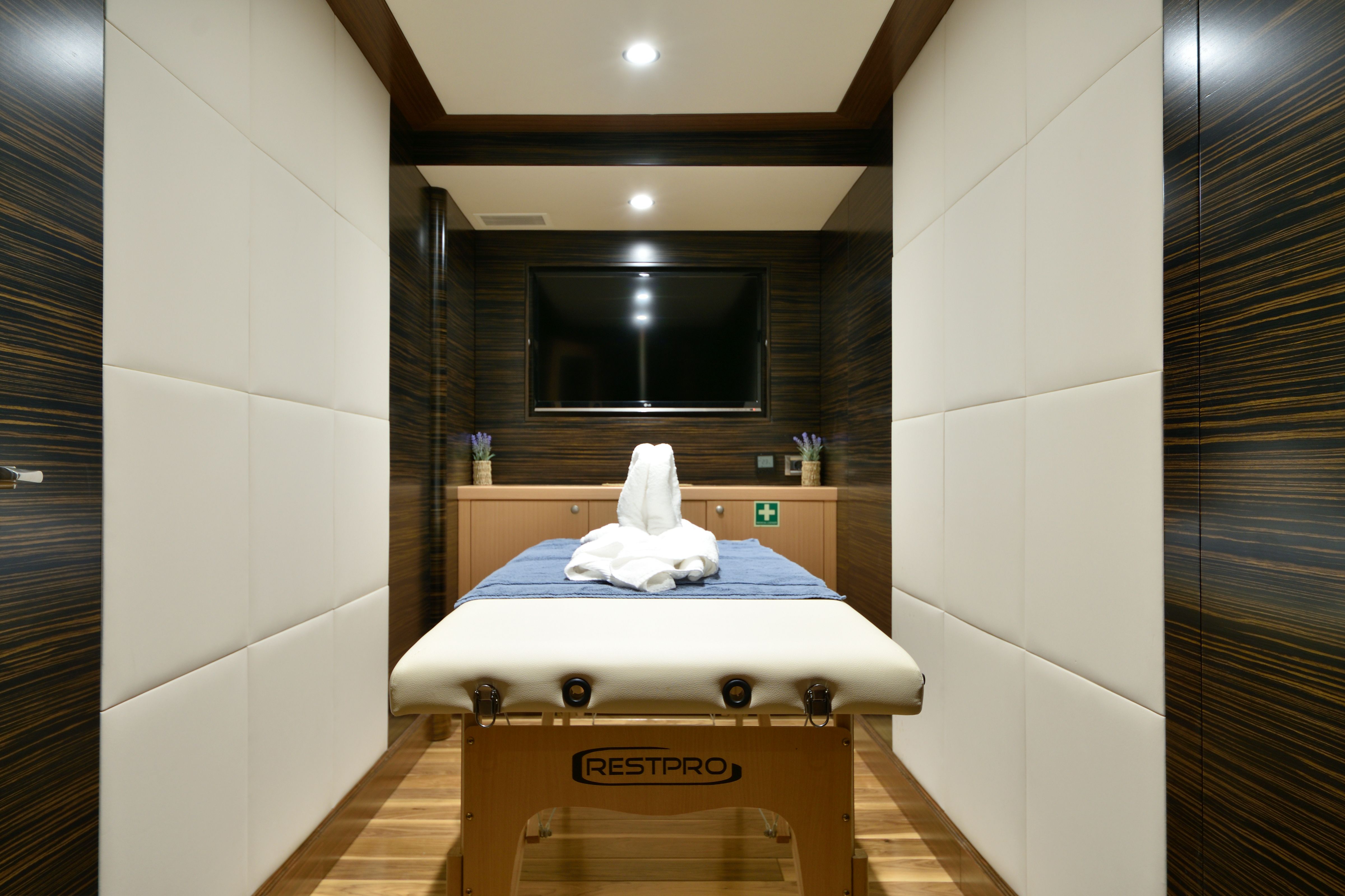 • Jacuzzi en flybridge, sauna, sala de masajes: experiencia de spa integral a bordo.