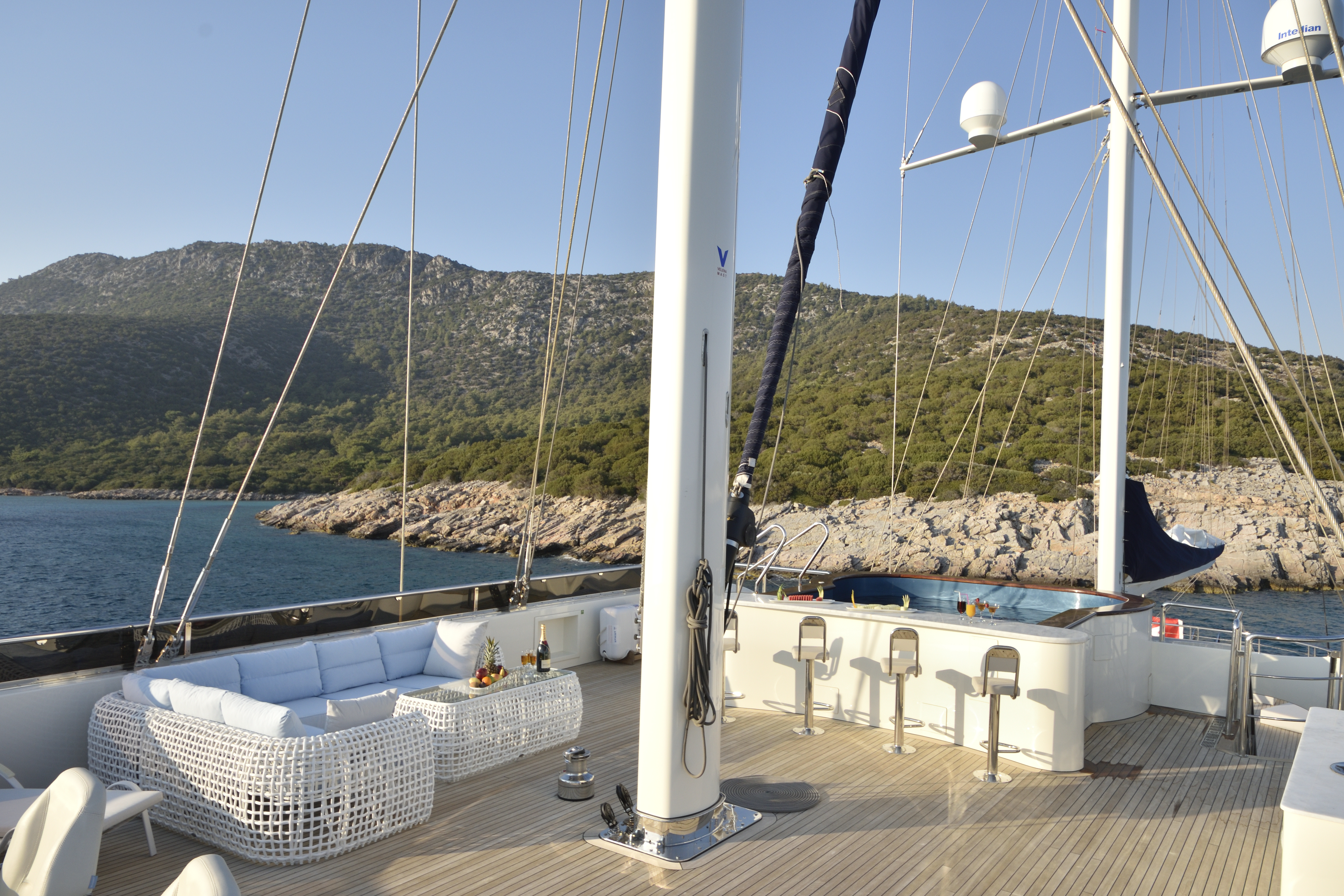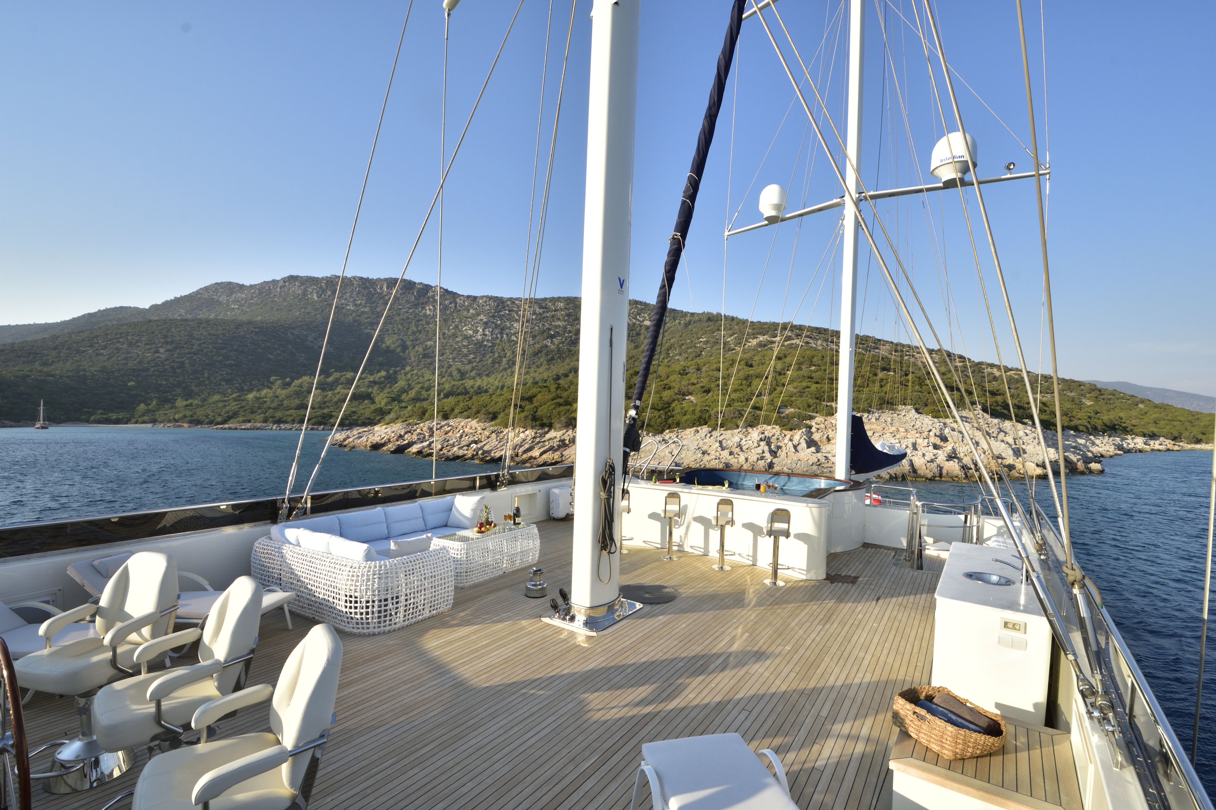 ÁREA DE NAVEGACIÓN MEIRA está disponible para charter en Turquía y Grecia, destinos destacados por sus aguas turquesas, costas variadas y encanto mediterráneo. Gracias a su diseño de casco de acero, manga de 10 m y calado de 4,15 m, ofrece estabilidad, amplitud y capacidad para fondear con confort.